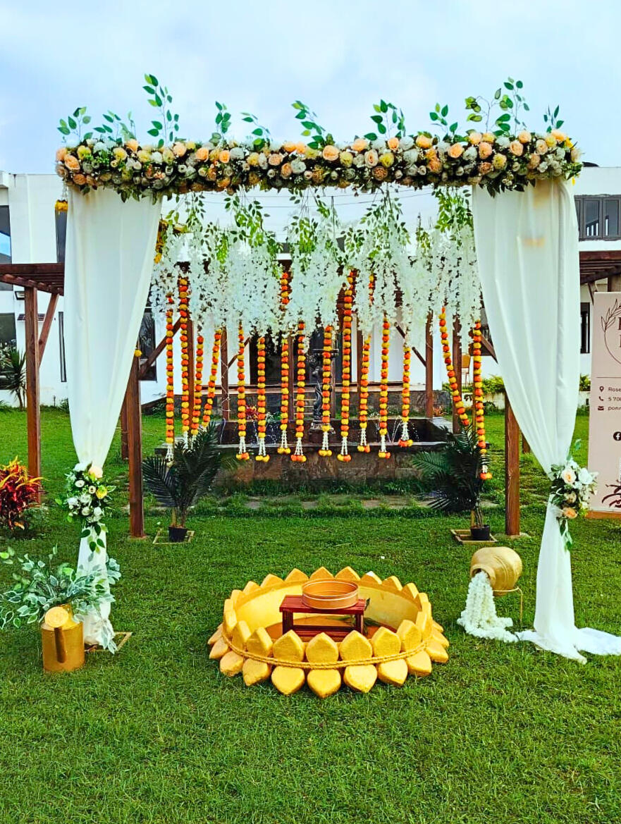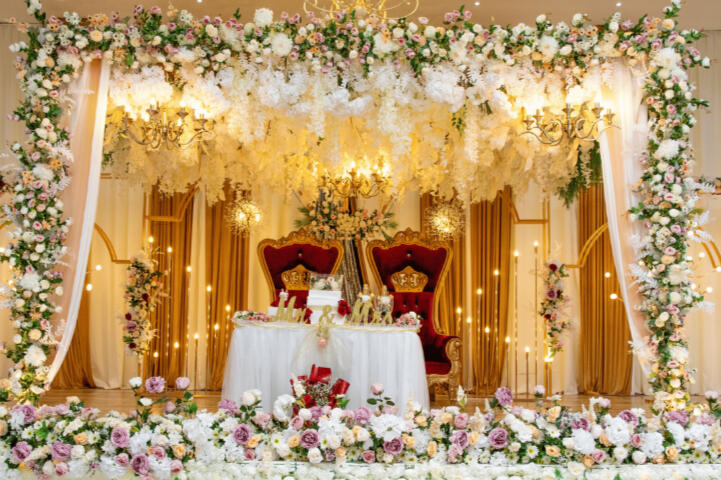 Stage decoration may be added as an optional service at an additional cost or removed if preferred.For outdoor areas, we provide customized and personalized decor options, carefully crafted to reflect your vision, theme, and special celebration.Contact us to arrange a personalized consultation and receive a tailored quote for your special day.
