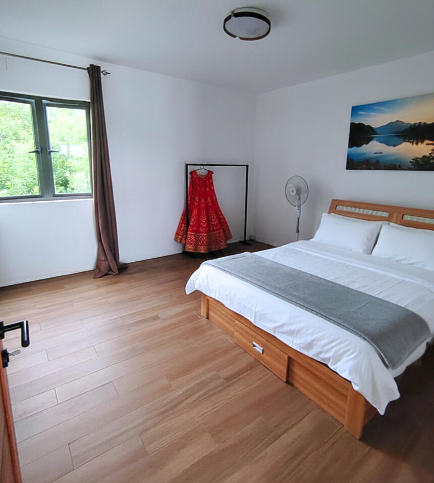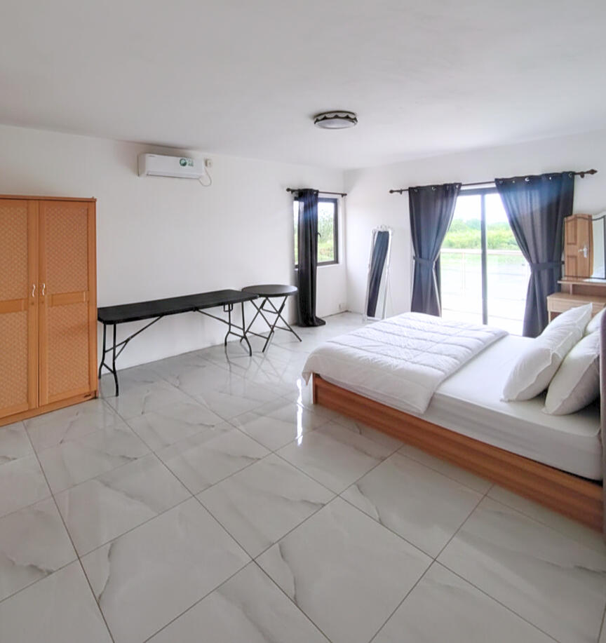 Master Bedroom with wardrobe, dressing table, air conditioner, ensuite bathroom and private balcony